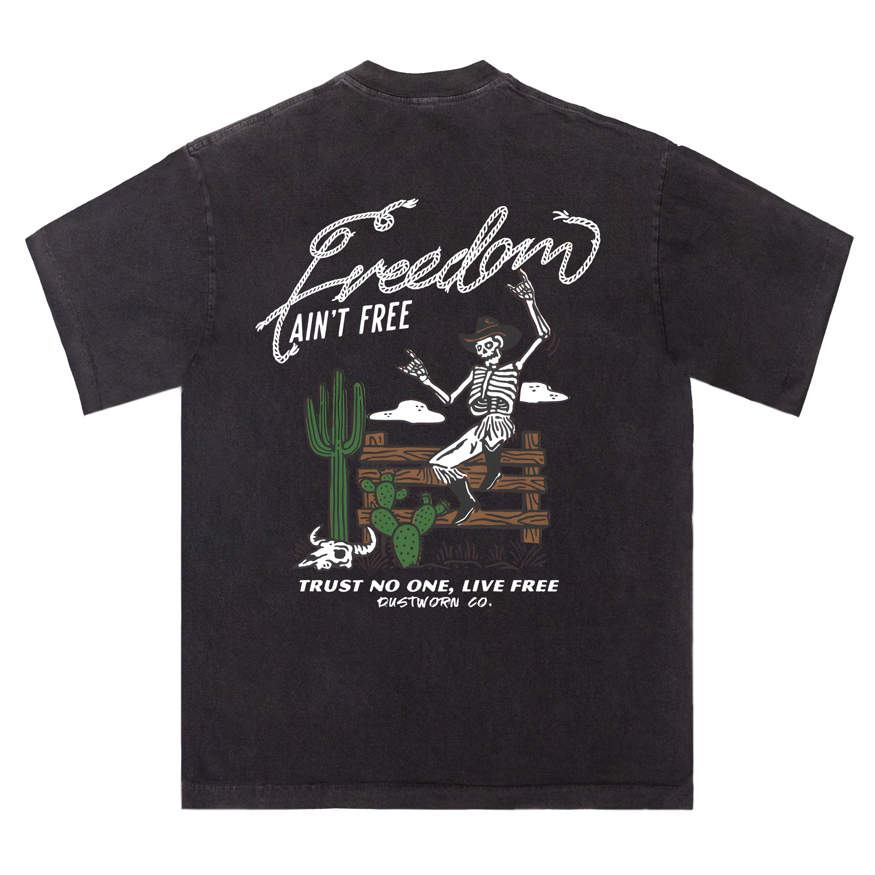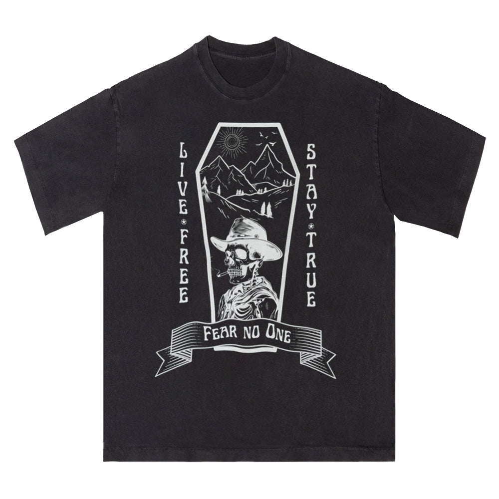 Men's 100% Cotton Freedom Skeleton Cowboy Graphic Tee
