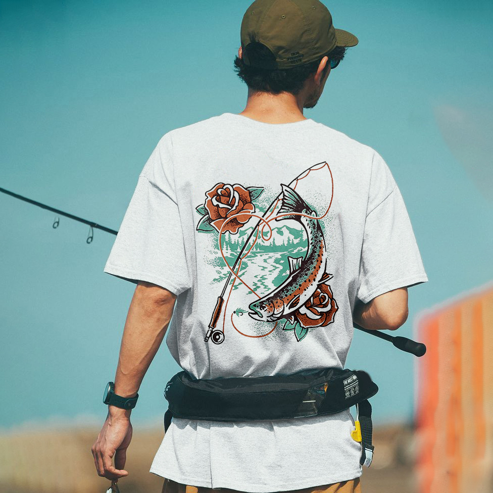 Fishing And Rose Printed Men's T-shirt